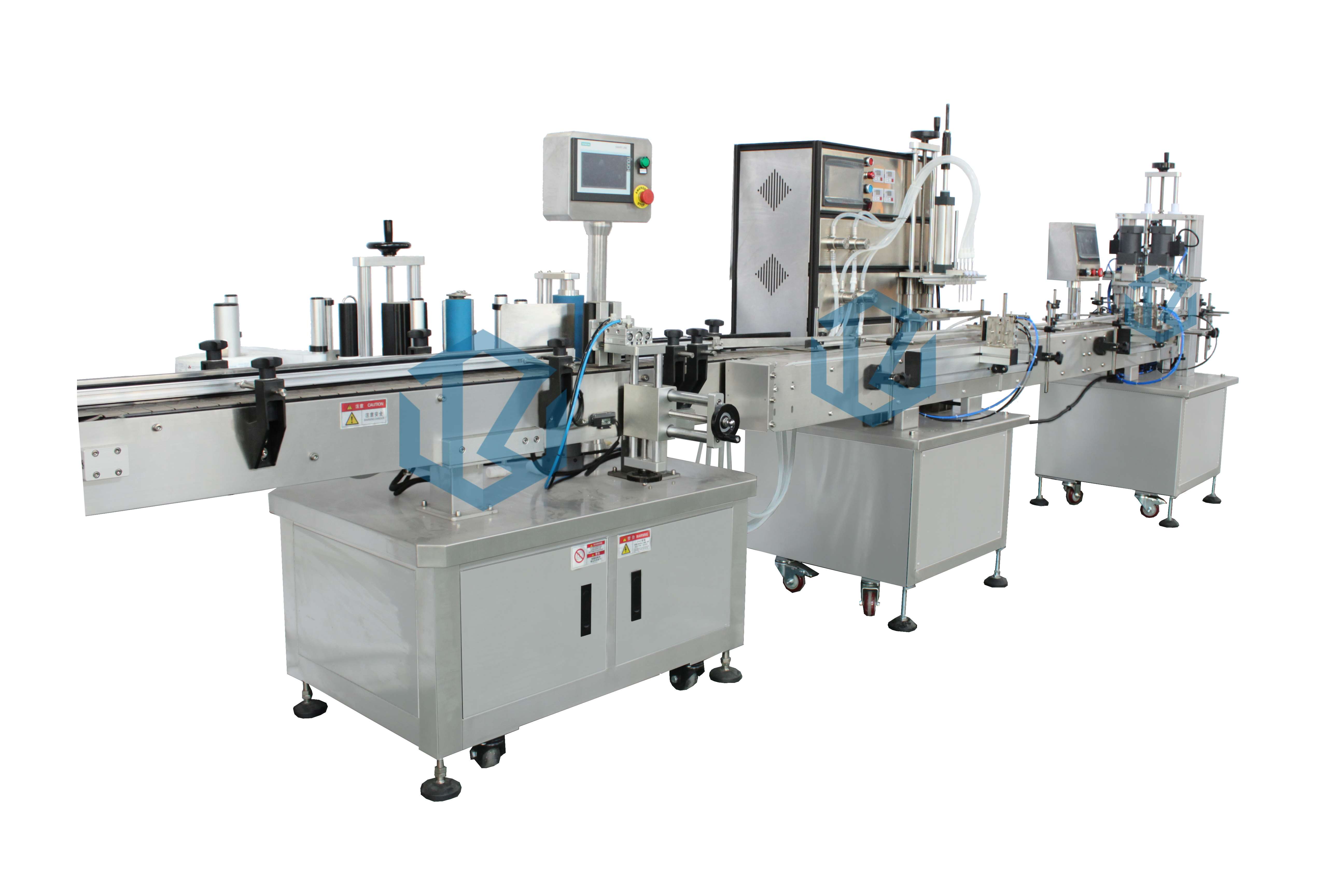完成動(dòng)作:人工放瓶-自動(dòng)灌裝-機(jī)器放蓋-自動(dòng)旋蓋–自動(dòng)貼標(biāo)-人工收瓶